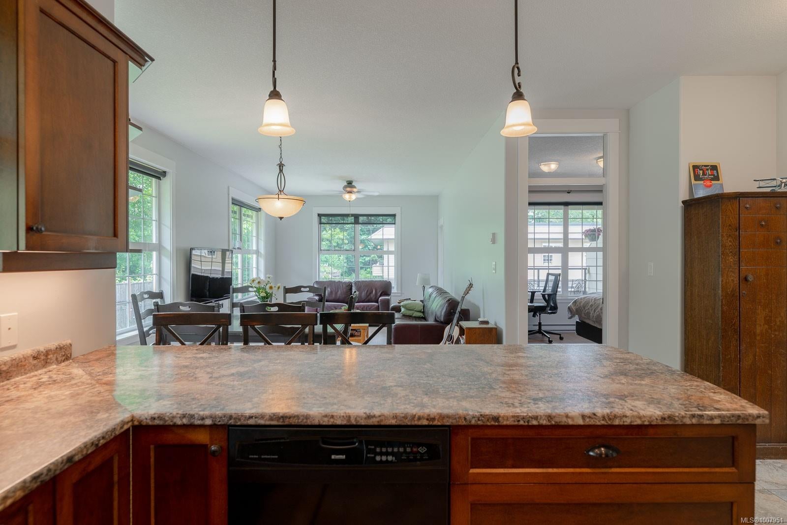 Updated 2-bedroom corner condo in North Ladysmith. Within walking distance of downtown shops, bus routes, popular cafés like Tim Hortons, and the Ladysmith Marina—ideal for sailing enthusiasts. Upgrades throughout, including new flooring, fresh paint and trim, and custom fixtures. Large windows fill the space with abundant natural light, and two private sundecks provide outdoor living areas—one accessible from the primary bedroom and the other from the living room. The open-concept design includes a stylish kitchen with bar seating, an adjacent dining area, and a seamless flow into the living room. Additional conveniences include in suite laundry and parking right below the unit near the access door. Move-in ready and equipped with everything you need. Call for more information or for a viewing today!